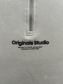 Felpa Jack&Jones beige taglia L con scritta in rilievo. Zip 3/4. 70% cotone e 30% poliestere. Lunghezza 68 cm Larghezza 53 cm Spalle 50 cm