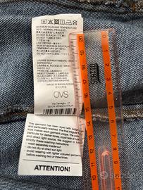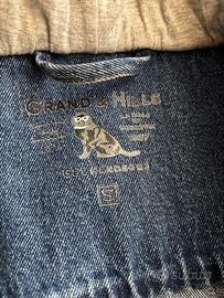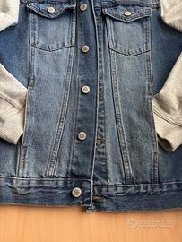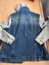 Materiale jeans con maniche e cappuccio in cottone grigio, misure spalle 40cm lunghezza 63 cm, 4 tasche davanti e bottoni punto vita per ridurre misura
