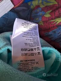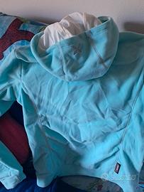 attenzione: purtroppo la fotocamera del telefonino mi produce un colore azzurro ma in realta' e' piu' tendente al turchese, quasi menta. la taglia indicata e' 12 - 155 come si vede in foto. Le dimensioni sono: lunghezza manica da ascella a fine polsino cm. 43, lunghezza del busto da spalla al borfo inferiore della felpa cm. 51, larghezza delle spalle cm.34