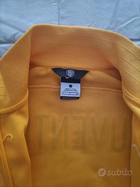 Vendo felpa della Juventus mai usata, colore giallo con banda nera sulle maniche. È la versione di qualche anno fa quando lo sponsor era nike. È in versione giacca con collo a lupetto, polsini, polsini e tasche laterali con zip. Taglia S.