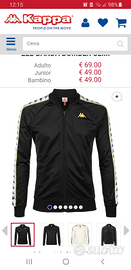 Felpa Kappa Non sciancrata Nera con bande laterali bianche N 2 tasche Taglia L Allego foto prezzo negozio