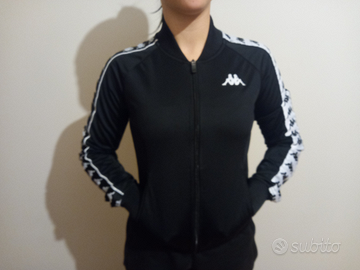 Felpa in acetato felpato della Kappa. Taglia xs. Colore nero. Vestibilità aderente.