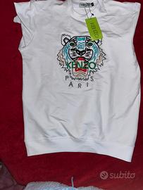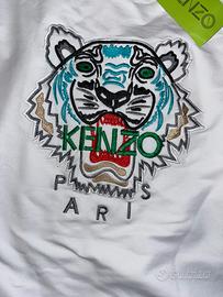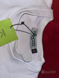 Felpa originale kenzo, colore bianco, con iconico ricamo tigre multicolore sul avanti.