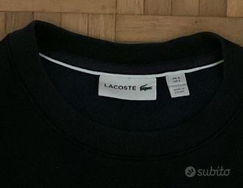 Felpa Lacoste originale Molto bella e comoda da indossare Tessuto di ottima qualità, morbido e caldo. Nera elegante e stilosa, sta bene dia con jeans che con tuta Pulita e pronta per essere indossata. Etichetta Fra: S US: L Ma veste M A disposizione