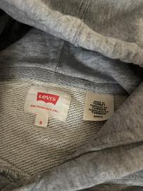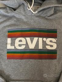 Felpa Levi’s originale, colore grigio chiaro, taglia S, con cappuccio e tasca frontale. Logo Levi’s a contrasto con effetto multicolor a righe. In ottime condizioni, senza difetti visibili.