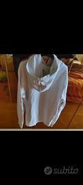 Tasca a marsupio frontale. Felpa in buone condizioni ha solo un micro foro nella parte anteriore. La Taglia su l'etichetta e un M, ma veste come una L, vestibilità larga e comoda. lo sono alto 1,75 x 70 kg Regolatevi in base alle misure che sto per darvi. Misura spalle 45, lunghezza felpa 65, misura ascelle 55, lunghezza maniche 60.
