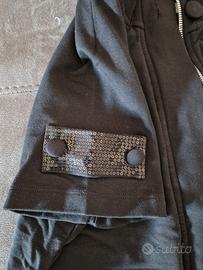 Felpa liu jo a maniche corte. Cerniera e bottoni sul collo. Dettagli di paillettes sulle maniche e sulle tasche