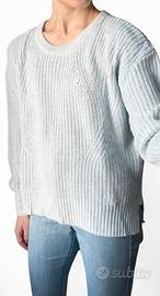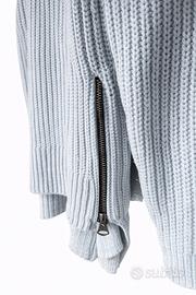 La felpa veste larga, ha 2 cerniere laterali perfettamente funzionanti ma ha una macchia tendente al giallo appena visibile sulla manica sinistra (potete vederla all’ultima immagine). Leggermente più lunga dietro (59 cm anziché 52 cm come davanti).