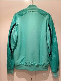felpa Macron Hellas Verona 100% poliestere verde acqua inserti blu maniche lunghe, chiusura lampo, due tasche frontali con zip, logo Hellas Verona taglia M