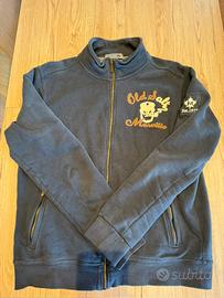 Felpa Marville Vintage Canadian originale, taglia L, colore blu scuro. Modello full zip con tasche laterali, ricami frontali “Old Oak Motorcycle” e dettagli brand su manica e retro. Designed in Italy, stile casual/vintage, tessuto morbido e resistente. In buone condizioni. Ideale per look sportivo o casual.