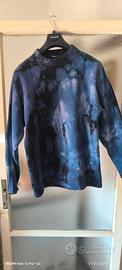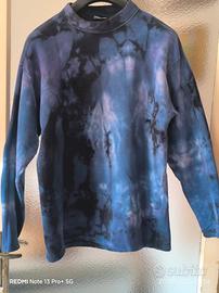 Questa felpa si distingue per il suo esclusivo pattern tie-dye sui toni del blu intenso e del nero, che crea un effetto unico e accattivante, quasi come un cielo notturno o delle nuvole.