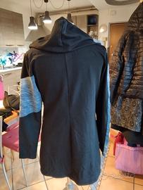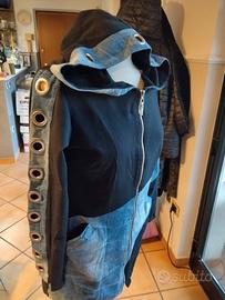 Felpa Mexton con un design unico e moderno. - Cappuccio con dettagli in denim e occhielli metallici. - Chiusura frontale con zip. - Patchwork di tessuti neri e denim. - Tasche laterali.