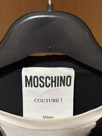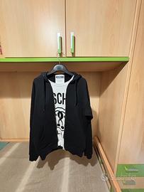 Felpa Moschino con cappuccio, taglia S, bianca e nera. Design originale con finta cerniera non chiudibile effetto giacchetto. Ottime condizioni, stile iconico e ricercato.