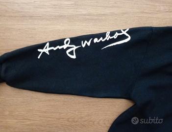 Felpa nera con cappuccio, in cotone e poliestere, che fa parte di una collaborazione tra il marchio di abbigliamento Pull & Bear e la Fondazione Andy Warhol. L'etichetta dice taglia S, ma veste L. In ottime condizioni.