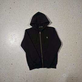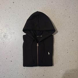Tasca marsupio davanti, zip dorata, polsini e fondo elasticizzati a coste.