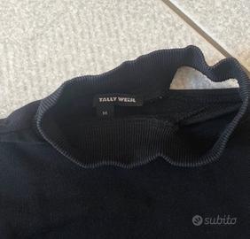 Felpa nera con disegni sulle maniche e buco sulla spalla