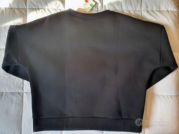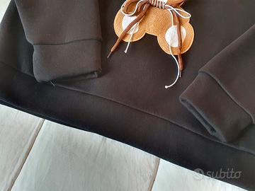 Caldissima felpa da donna nera Made in Italy, eccellente qualità e pesantezza, 95% cotone 5% elastam. Modello comodo, con spalla calata ed ampio giromanica. Taglia unica (verosimilmente comparabile ad una Media). La figura dell'orsacchiotto si può eventualmente scucire con facilità. Nuova con Cartellino. Nell'ultima immagine si vedono dei riflessi magenta, ma è un effetto della foto, la felpa non è scolarità. Disponibile anche blu senza la figura dell'orsacchiotto (già scucita). Misure in cm prese in piano: Larghezza Spalle cm 70 Larghezza girocollo cm 20 Circonferenza Torace cm 132 Giromanica cm 43 Lunghezza misurata dalla base del retro colletto cm 54 Lunghezza misurata dalla spalla cm 58 Lunghezza manica misurata dalla spalla cm 43,5 Lunghezza manica misurata dall'ascella cm 39 Larghezza in piano fondo maglia cm 51 Altezza balza e polsini cm 6 Non si accettano offerte, il prezzo non è trattabile. Spedizione gestita da Subito
