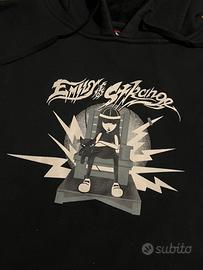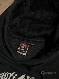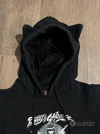 Felpa nera con cappuccio e simpatiche orecchie da gatto, ispirata al mondo dark e alternativo di Emily the Strange.