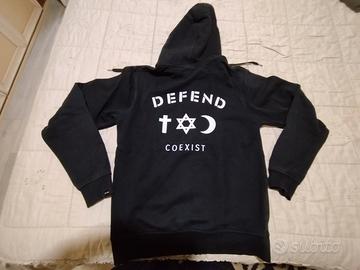Felpa nera Defend con zip e cappuccio, doppia tasca , in ottime condizioni