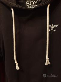 Felpa nera, in cotone, marca BOY London originale, con cappuccio, laccetti bianchi e elastico in vita. Veste 12-16 anni