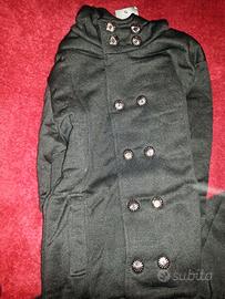 Felpa sancrata e spessa, con abbottonatura a misura più o meno stretta, tiene caldo e le taglie vestono molto aderente, nuove mai indossate, fuori dalla confezione solo per fotografie e controllo cuciture. Colore nero con cappuccio. Taglia L, rimaste tre felpe.