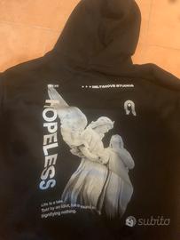 Felpa nera taglia L con disegno stampato dietro