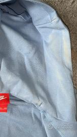 Felpa nike ottime condizioni, piccolo difetto nella cerniera e alcune macchie gialle che purtroppo non vanno via all’interno del cappuccio come si può vedere nella 5 foto.Taglia S.