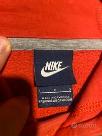Felpa Nike anni 90’ con design a blocchi di colore rosso e blu, dotata di cappuccio e tasca frontale. Taglia L. Ideale per il tempo libero e l'attività sportiva.