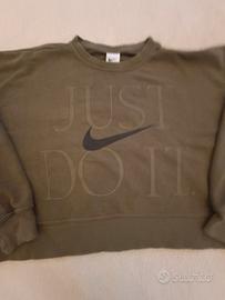 Felpa Nike vintage da donna taglia M, modello corto con scritta JUST DO IT e logo frontale. Colore verde oliva, stile sportivo retrò Y2K. In ottime condizioni generali, presenta lievi segni d’uso dovuti alla natura vintage del capo. Perfetta per outfit casual o streetwear. Approfitta dei set, risparmia! lunghezza da sotto il collo:43,5 larghezza:59 è una felpa da donna corta che arriva all' ombellico