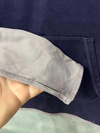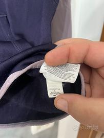 Vendo felpa tecnica con cappuccio Nike Dri-Fit, originale, in ottime condizioni. Il design è caratterizzato da un elegante contrasto tra il corpo viola scuro e le maniche raglan color lilla. Il capo è ideale per l'allenamento o per il tempo libero grazie al tessuto traspirante. • Dettagli extra: Pratici fori per i pollici alle estremità delle maniche per mantenere le mani calde e la manica in posizione. • Vestibilità: Taglia S (Small). • Caratteristiche: Tasca a marsupio frontale e maxi logo Nike stampato sul petto. Spedizione veloce e curata in tutta Italia. Disponibile per ogni info!