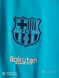 Felpa del Barcellona marca Nike, taglia XL chiusura con zip e tasche interne ed esterne, colore azzurro e loghi cuciti, Liga Spagnola 2018-2019