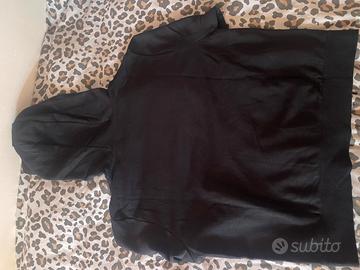 Felpa nera con cappuccio, baffo leopardato taglia M