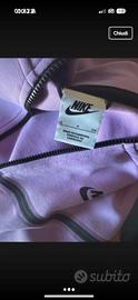 Felpa originale Nike modello Tech Fleece da donna, taglia S, colore rosa/lilla con dettagli neri.