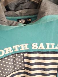 felpa North Sails originale, tg. 16 anni, turchese, con cappuccio foderato in tessuto leggero effetto jeans. Perfetta.