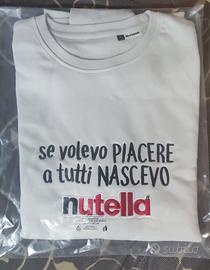 Felpa Nutella bianca con stampa: Se volevo piacere a tutti nascevo Nutella. - Cappellino blu con scritta OGGI di buon umore incluso. - Taglia XL.