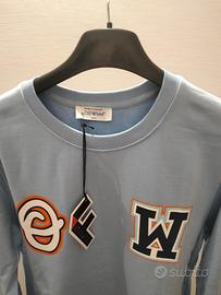 Felpa girocollo Off-White in una tonalità azzurra con dettagli colorati.