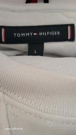 Felpa bianca usata pochissimo ovviamente originale, Tommy hilfiger, colore bianca con il logo frontale classico con i colori del brand, taglia L.