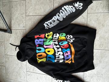 š¤felpa over-size nera di bershka con cappuccio e scritte sulle braccia, sul fronte e sul retro per ragazze/donne š presenta una frase multicolore sia sul davanti che sul retro della felpa occupandone tutto lo spazio š¤presenta una frase di colore bianco sulla manica, sia di sinistra che di destra štaglia della felpa: xs š§¶ materiale felpato allāinterno ā felpa in ottime condizioni, indossata un paio di volte, verrĆ spedita e consegnata giĆ lavata e pronta allāuso