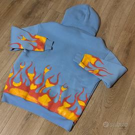 Felpa Palm Angels con grafica fiamme accese sulla parte inferiore e sulle maniche. Prezzo 35€