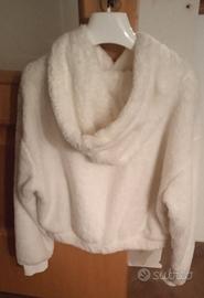 felpa bianca con cappuccio tessuto pelliccia sintetica