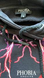 Vendo a 10 euro, Felpa PHOBIA Archive (Nera), con cappuccio, immagine stampata Fulmine, taglia M, in cotone pesante. Con tasche. Usata ma ottima.