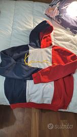 Felpa da uomo con un design a blocchi di colore vivaci. - Maniche lunghe. - Cappuccio. - Tessuto confortevole.
