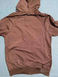 Felpa con zip Pull&Bear linea XDYE, taglia S, colore marrone/grigio con dettagli bianchi e gialli sul lato anteriore richiamati anche all'interno del cappuccio. Condizioni ottime