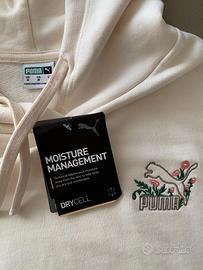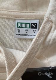 Felpa Puma da donna cappuccio con coulisse, maniche lunghe, polsini e bordo cannettato elasticizzato, in cotone, colore panna, vestibilità rilassata e lunghezza ridotta, con logo colorato ricamato sul petto, ampiezza spalle cm 87, lunghezza , cm 61, taglia M, composizione: esterno cotone: 80%, viscosa: 20%, Stecca: 96% Cotone, 4% Elastan, nuova con cartellino mai indossata, possibile ritiro anche a mano a Milano, zona Niguarda, con la formula visto e piaciuto
