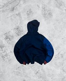Felpa con cappuccio **Polo Ralph Lauren** originale, modello color block nei toni blu navy, blu elettrico e panna. Chiusura con zip frontale, cappuccio regolabile e iconico logo ricamato sul petto. Stile sportivo e casual, ideale per outfit streetwear o quotidiani.