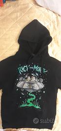 Felpa fuori cotone e felpa dentro di Rick and Morty con foto della navicella. Due tasche e cappuccio. Nuovissima mai usata con ologramma TG XS . Ritiro a mano in Marino .