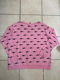 Felpa rosa con stampa di squali neri linea Divided di H&M taglia L. Si tratta di un capo leggero, a maniche lunghe, con girocollo e bordi a costine. Indossata ma in ottime condizioni.