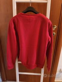 È una felpa a girocollo (crewneck) in un colore rosso o bordeaux intenso. Presenta una grande stampa grafica frontale con un teschio che ha fiamme negli occhi, catene intorno alla mascella e la scritta "BREAK BONES NOT HEARTS" (rompi le ossa, non i cuori) e "Whatever" in basso, Busto 92 cm
