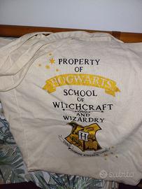 Vendo felpa (mis 10 anni) sciarpa e borsa in tela della famosa saga Harry Potter.