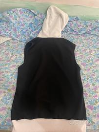 Giacca con cappuccio e dettagli a contrasto. - Design senza maniche. - Cappuccio con laccetti. - Tasca frontale con zip.